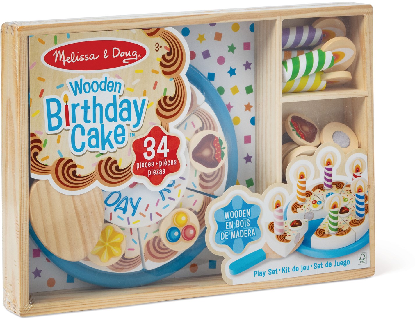 Tijd voor taart! Breng elke dag de magie van verjaardagen tot leven met deze prachtige houten verjaardagstaart van Melissa en Doug. Met deze set kan jouw kind eindeloos feestjes vieren, gasten uitnodigen en kaarsjes uitblazen. Of het nu een denkbeeldige knuffel is die jarig is of gewoon een gezellig theekransje met taart op het menu… het wordt gegarandeerd een feestje om nooit te vergeten.