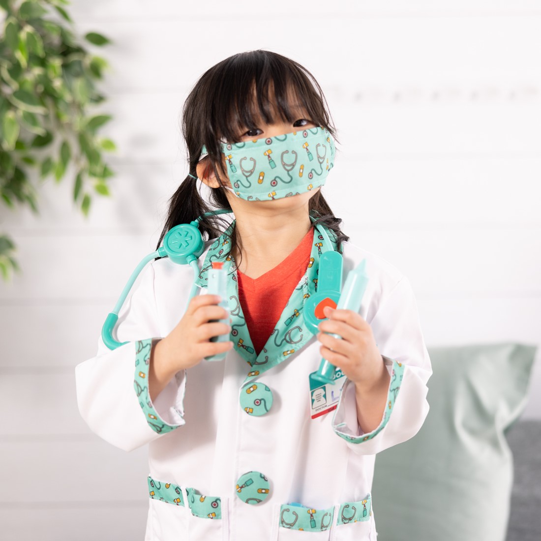 Tijd voor een belangrijke controle! Met de Melissa en Doug Verkleedset Dokter kruipen kinderen zo in de huid van een echte dokter. Of het nu gaat om een knuffel met buikpijn of een zieke pop, deze complete set zorgt voor eindeloos fantasierijk fantasierijk spel. De witte doktersjas, het mondkapje en de realistische medische instrumenten maken het plaatje compleet. En het leukste? De stethoscoop maakt echte hartslaggeluiden!