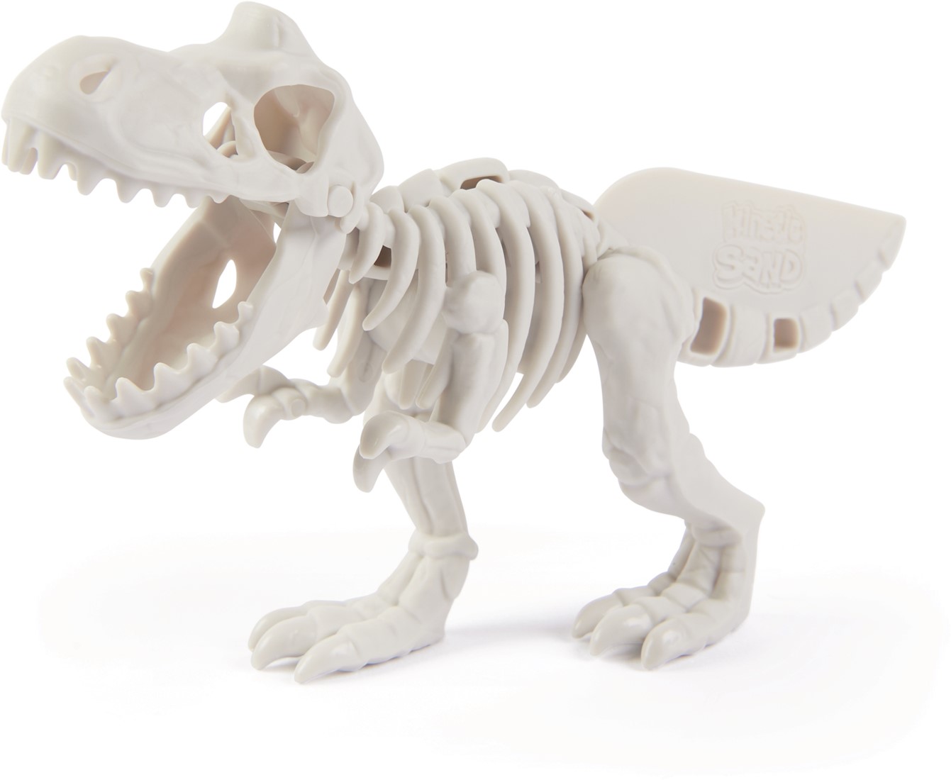 Bouw een dinosauruswereld met de Kinetic Sand T-Rex-ontdekkingsset. Deze set bestaat uit 680 g Kinetic Sand in 3 kleuren (natuurlijk bruin, zwart en neongroen), 5 fossielen die je ook als gereedschap kunt gebruiken, een schep, decoratieve figuren en een dubbelzijdige achtergrond. T. rex graven stimuleert eindeloos fantasierijk spelen terwijl de kinderen aan het graven en harken zijn naar verborgen schatten. Elk T. rex-fossiel heeft een unieke zandfunctie: stamp pootafdrukken met de poten, hark met de klauwen, snijd het zand met de staart en kneed eieren met de ribben. Kinderen kunnen hun set versieren en omtoveren tot een prehistorische wereld met de achtergrond. Ze kunnen ook alle fossielen met elkaar verbinden om een mega T. rex te bouwen. Na het spelen kun je alles inpakken in de opbergdoos. Het One and Only Kinetic Sand is gemaakt van natuurlijk zand. Het is gemakkelijk op te ruimen, want het blijft aan zichzelf plakken, Maak steeds weer nieuwe creaties en laat het zand door je handen glijden - het voelt zo fijn dat je ermee wilt blijven spelen. Kinetic Sand is een alternatief voor knutselklei en is een welkome aanvulling op de sensorische bak, speelactiviteiten en Montessori-speelgoed. Kinetic Sand stimuleert de fijnmotorische vaardigheden en creativiteit met zelfstandig, zintuiglijk spel. Haal de Kinetic Sand T. rex ontdekkingsset in huis.