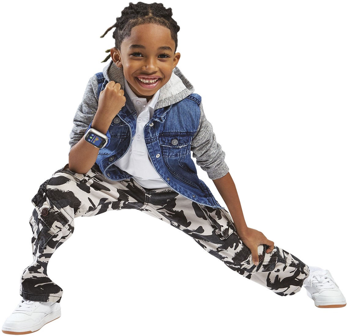 De coolste 16 in 1 smartwatch! Maak selfies en video's met de twee ingebouwde camera’s, leer klokkijken met gesproken tijd en creëer je eigen stijl met de 3D klokweergaves. Speel uitdagende spellen en leg te gekke momenten vast op foto en video én bewerk ze met coole effecten, kaders en filters. Stuur kaarten en speel spelletjes met vrienden dankzij de QR-code verbinding tussen 2 horloges. Maar dat is nog niet alles, neem spraakmemo’s op, download gratis nieuwe spellen én maak bijzondere muziekcreaties!