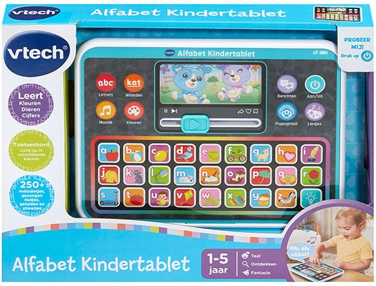 Leer het alfabet met deze kleurrijke tablet! Ga op ontdekking met de puppy's en maak kennis met letters, letterklanken, woorden en kleuren! Druk op de apptoetsen om vrolijke berichtjes, gezongen liedjes en korte 'pootcasts' te horen én speel leerzame spellen! Beweeg het schuifje onder het scherm om de puppy's te zien bewegen en grappige reacties te horen. Het is tijd voor dolle pret met de letters van het alfabet!
