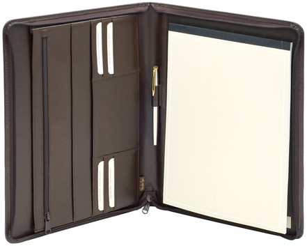 Schrijfmap van der Spek A4 + rits leer bruin