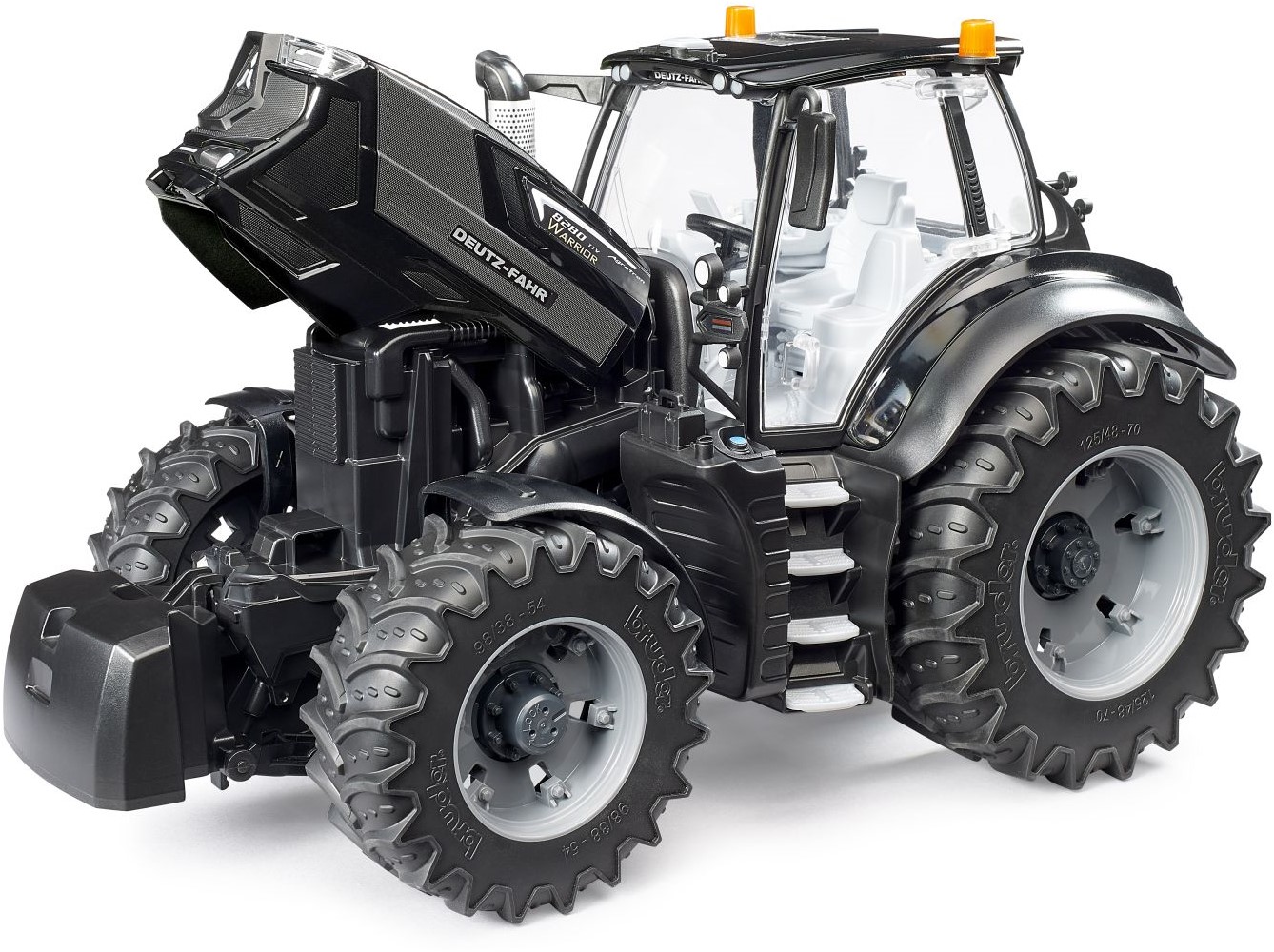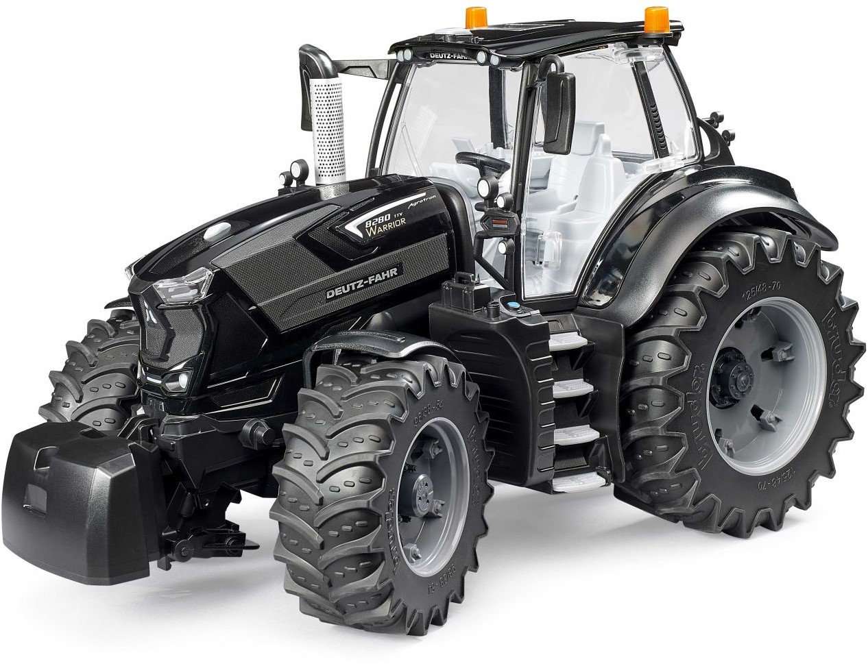 De 8280 TTV van DEUTZ-FAHR: waar kracht op precisie botst. De 8280 TTV is een betrouwbare en sterke werkmachine met de perfecte technologie-mix voor professionele boeren. Met indrukwekkende 287 pk is deze trekker tegen alle uitdagingen bestand. Qua design bijzonder indrukwekkend is de exclusieve, zwarte variant van deze trekker, de Warrior. Ook op het gebied van functionaliteit en kwaliteit doet het nieuwe model van BRUDER op schaal 1:16 niet onder voor het origineel, volgens het motto – Just like the real thing. De bestuurderscabine is volledig beglaasd en de deuren zijn eenvoudig te openen. De te openen motorkap biedt zicht op de motor. De eenvoudige bestuurbaarheid wordt bereikt door de ingebouwde pendelas en de, via het schuifdak inzetbare stuurverlenging. Als uitbreiding op dit model kan een frontlader (art.-nr. 03333) worden gemonteerd. Voor nog meer speelplezier zijn de afneembare wielen aangebracht. De uitbreiding met de figurenset Werkplaats (art.-nr. 62100) verhoogt de speelwaarde van deze trekker nog eens. Uiteraard passen op dit zwarte juweel alle landbouwaanhangers en landbouw werktuigen van BRUDER.