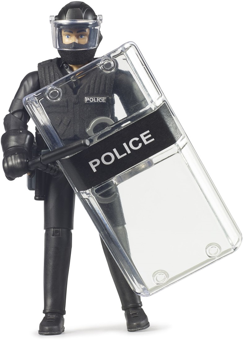 Wanneer politie-inzetten gespannen worden, worden ter versterking en ontmanteling van deze situaties de Police Special Forces opgeroepen. Deze speciale eenheid versterkt nu ook de hulpdiensten van BRUDER. Met speciale uitrusting, waaronder ook een schild. Als uitbreiding op deze uitgebreid uitgeruste politieagent passen de bworld politiebureau (art.-nr. 62732) en de MB Sprinter Police Special Forces (art.-nr. 02685) er perfect bij.