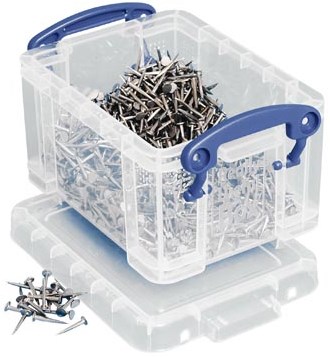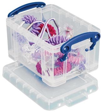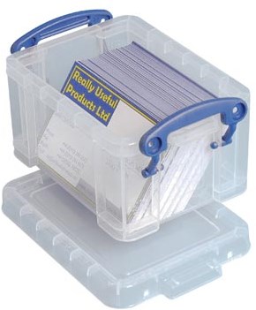 Opbergdoos uit sterk transparant kunststof. Deksel afsluitbaar met 2 clips, waardoor de inhoud beschermd wordt tegen stof en vuil. Perfect stapelbaar met of zonder deksel. Volledig platte en versterkte bodem. Ft buiten 120 x 85 x 65 mm, ft binnen 90 x 65x 55 mm. Inhoud: 0,3 l.