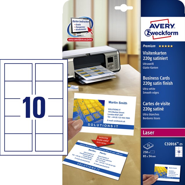 Visitekaart Avery Zweckform C32010-25 85x54mm 185gr 250stuks