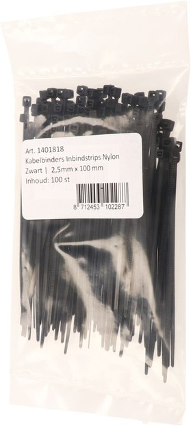 Kabelbinders IEZZY nylon 2.5x100mm D 20.5mm zwart 100 stuks