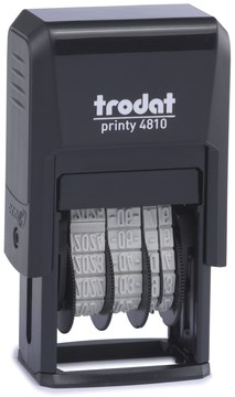 • Trodat Printy™ 4810, datumstempel met maanden in cijfers en zwarte inkt.