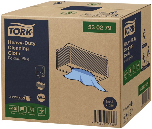 Met de Tork heavy-duty gevouwen reinigingsdoek W4 blauw heeft u geen losse doeken of dergelijke mee nodig.