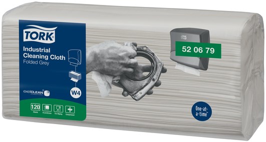 Reinigingsdoek Tork Industrial W4 gevouwen flexibel en zacht 120 vel grijs 520679