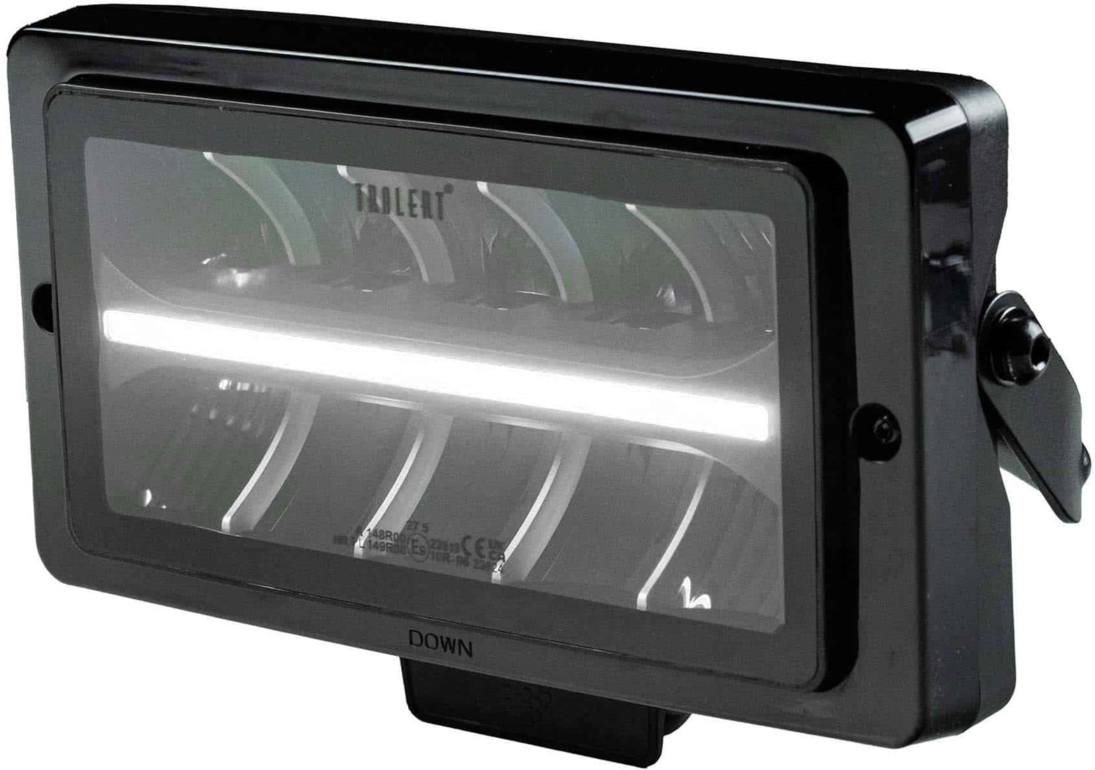 De verstraler voldoet aan de normen CE, ECE R10, ECE R148 en ECE R149 en beschikt over een IP69K-classificatie, wat hem geschikt maakt voor toepassingen in veeleisende omgevingen.