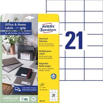 Avery Zweckform universele etiketten, 70 x 42,3 mm, wit, permanent klevend, 210 etiketten, 10 vellen