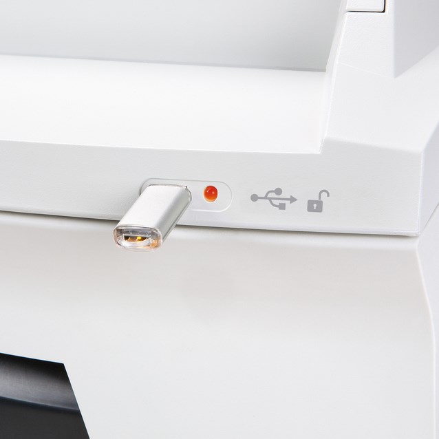 De datavernietiger met autofeed beschikt over een speciaal ontwikkelde invoer- en transportwals met Nanogrip Technologie en trekt blad voor blad van de papierstapel veilig naar binnen.