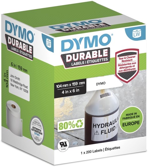 De Dymo labelwriter is een stevig label dat langer mee gaat dan normale papieren labels. De Dymo labels zijn uitgerust met industirële lijm en een stevige deklaag die slijtage en loskomen door hitte, vochtigheid of oplosmiddelen voorkomt.