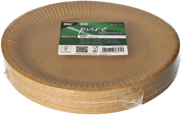Bord "pure", rond, bruin, diameter 23 cm, uit karton, pak van 50 stuks
