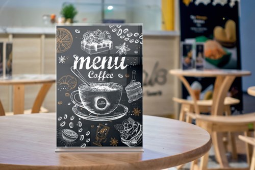 • Dit vrijstaande poster frame van acryl met randloos ontwerp heeft een stijlvolle en moderne uitstraling. Het naadloze, dubbelzijdige poster frame van acryl heeft een geïntegreerde standaard en opening aan de zijkant voor het snel en eenvoudig wisselen van inhoud. Het acryloppervlak beschermt je documenten en kan gemakkelijk worden schoongemaakt, waardoor dit poster frame de ideale oplossing is voor de weergave van tijdelijke of permanente mededelingen, documenten of informatie.