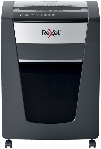 Rexel Momentum anti-jam papiervernietigers zijn ideaal voor het vernietigen van vertrouwelijke documenten op kantoor. De Rexel Momentum P515+ papiervernietiger versnippert tot 15 vel A4-papier (80 g/m²) in één keer door de handmatige invoergleuf tot P-5 microcut snippers (2x15 mm). De actieve sensortechnologie meet in realtime het aantal vellen dat wordt ingevoerd om papierstoringen en verkeerde invoer te voorkomen; dit wordt aangegeven door een rood LED-lampje op het bedieningspaneel. Deze papiervernietiger zal pas werken als het aantal vellen is teruggebracht tot onder of op het maximum aantal vellen. Deze micro cut papiervernietiger is ontworpen voor gemiddeld tot intensief gebruik met zijn groot aantal vellen capaciteit, grote opvangbak van 30 liter en lange doorlooptijd tot 4 uur. Het is niet nodig om eerst nietjes en paperclips te verwijderen, deze worden door deze shredder zonder probleem meeversnippert.