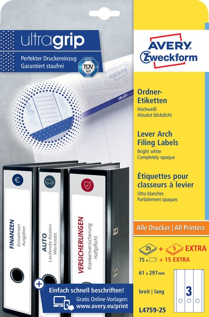 Stel een vraag over Rugetiket Avery breed/lang 61x297mm zelfklevend wit