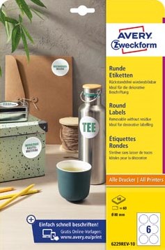 Avery Zweckform ronde etiketten diameter 80 mm wit afneembaar 60 etiketten 10 vellen