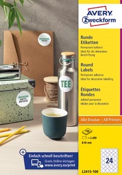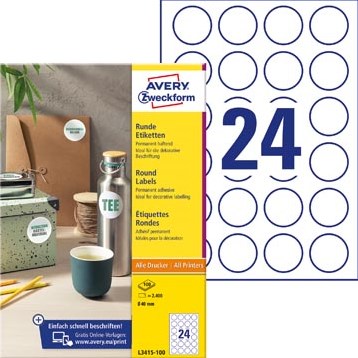 Avery Zweckform ronde etiketten diameter 40 mm wit permanent klevend 240 etiketten 10 vellen