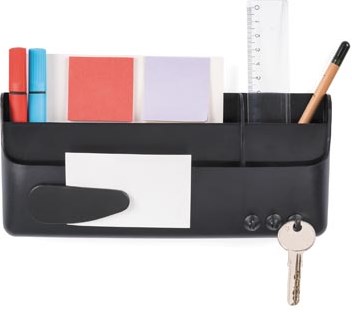 Inclusief haken voor sleutels en een clip om papieren vast te houden. Helpt u om whiteboard benodigdhedennetjes georganiseerd te houden. Kan ook aan de muur worden gemonteerd.