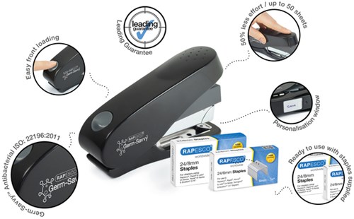 Nietmachine Rapesco Germ-Savvy Less Effort Eco Luna antibacterieel zwart