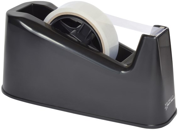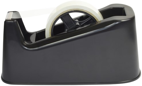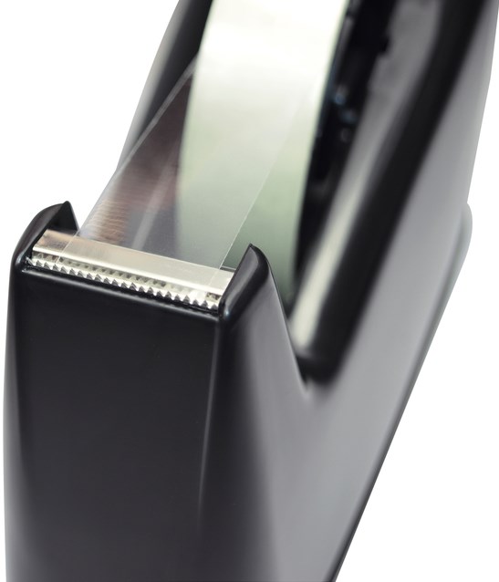 • Het is compatibel met standaard 25 mm brede bandrollen van 33 m en 66 m, en wordt geleverd in een mooie zwarte kleur die op elk bureau past.