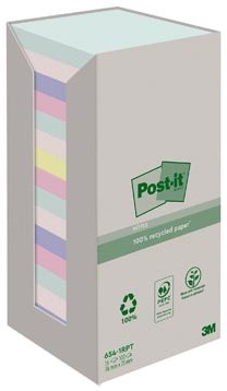 Post-it recycled notes Nature 100 vel 76 x 76 mm pak van 16 blokken geassorteerde kleuren
