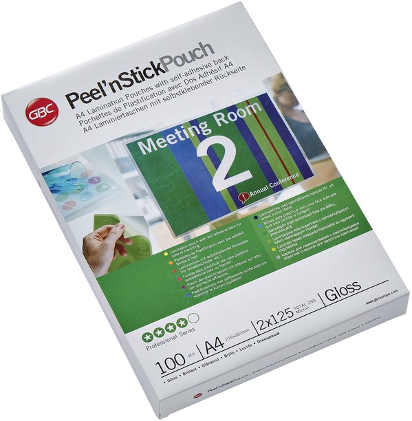GBC Peel'n Stick lamineerhoes ft A4, 200 micron (2 x 100 micron), glanzend, pak van 100 stuks