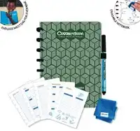 Inclusief zwarte 0,6 mm marker en microvezeldoek. 80 herbruikbare bladzijden (40 vel). 12 maandpagina's en 24 week pagina's. Extra pagina's: verjaardagskalender, bucketlist, boodschappenlijst en een rooster. Verschillende types bladen: gelijnd, geruit, puntjes en blanco. A5.