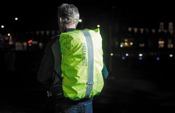 Reflecterende band. Waterdichte stof. 2 aantrekbare elastieken. Extra riem op de rugzijde. Met label voor Magnetlight of Multilight. Inhoud: 30-35 liter. Kleur: geel.