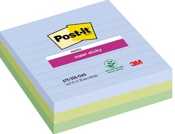 Post-it Super Sticky notes XL Oasis 70 vel 101 x 101 mm gelijnd assorti pak van 3 blokken