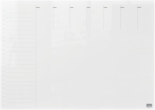 Acryl whiteboard weekplanner met modern randloos ontwerp dat eenvoudig kan worden schoongemaakt en opnieuw gebruikt.