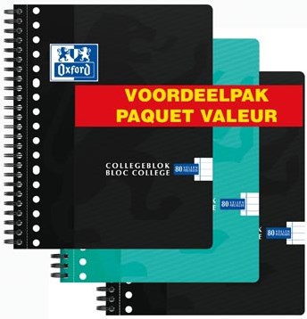Oxford School collegeblok A5+ 160 bladzijden 17-gaats gelijnd assorti 3 stuks