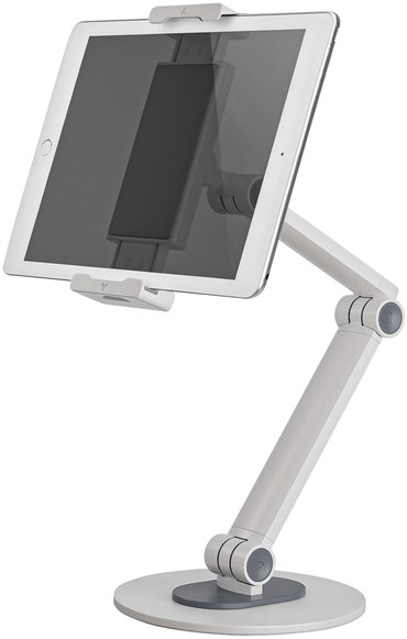 De DS15-550WH1 is een universele tablet stand voor tablets van 4,7 tot 12,9 met een draagvermogen van 1 kg en max hoogte van 47cm.