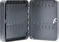 Uit metaal. Met een cilindersleutelslot. 2 sleutels meegeleverd. Met vaste lijsten. Kleur: grijs.