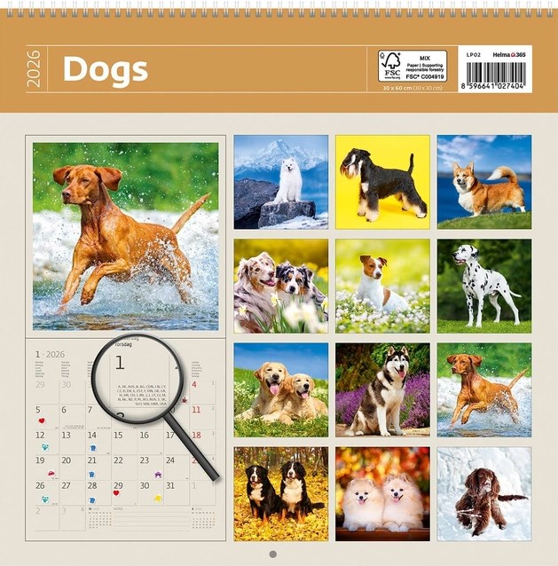 Kalender 2026 Helma 365 30x30cm honden