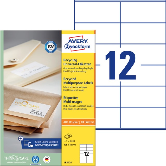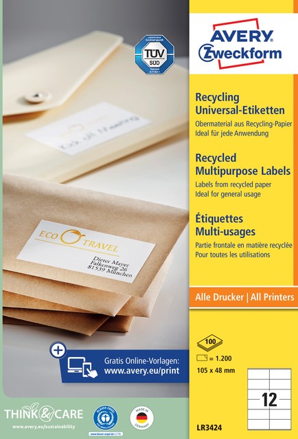 Stel een vraag over Etiket Avery Zweckform LR3424 105x48mm recycled wit 1200 etiketten