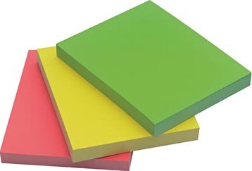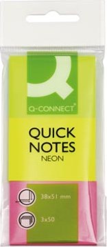 Memoblaadjes Q-CONNECT 38 x 51 mm 50 vel etui van 3 blokken in neonkleuren