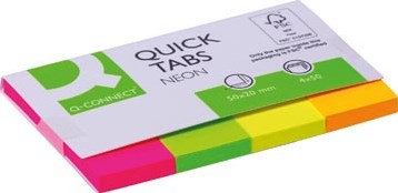 De Post it tabs van Q-CONNECT zijn perfect voor het markeren en organiseren van documenten. Deze herpositioneerbare tabs beschadigen de ondergrond niet en zijn makkelijk beschrijfbaar. Met een formaat van 20 x 50 mm zijn ze ideaal voor zowel thuis als op kantoor. De blister bevat vier neonkleuren: roze, groen, geel en oranje, met 50 tabs per kleur. Dit maakt ze niet alleen functioneel maar ook aantrekkelijk voor iedereen die zijn of haar werk wil structureren.