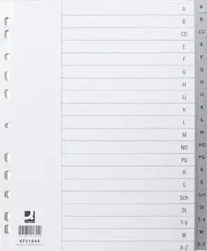 Q-CONNECT alfabetische tabbladen A4 PP 20 tabs grijs