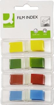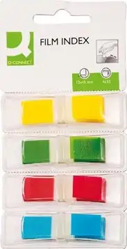 De Q-CONNECT mini index tabs zijn perfect voor het markeren en organiseren van documenten. Deze tabs zijn herpositioneerbaar en beschadigen de ondergrond niet, waardoor ze ideaal zijn voor zowel thuis als op kantoor. Met een formaat van 12,5 x 45 mm zijn ze makkelijk beschrijfbaar en komen ze in een blisterverpakking van 4 kleuren: geel, groen, rood en blauw. Met 35 tabs per kleur heb je voldoende voorraad om al je belangrijke documenten te markeren.