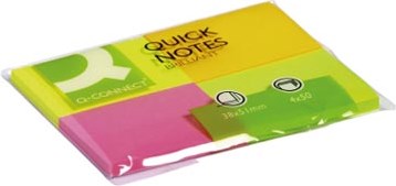 Memoblaadjes Q-CONNECT 38 x 51 mm 50 vel pak van 4 blokken in neonkleuren