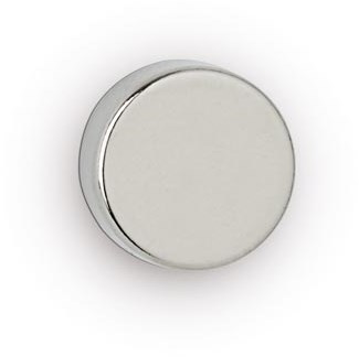 Esthetisch vormgegeven neodymium ronde magneet, strakke vorm en glad stalen oppervlak, zilverkleurig, past zich decent aan de omgeving aan.