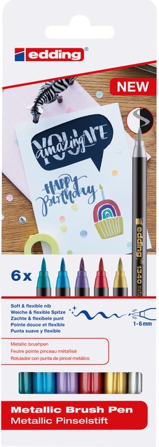 Edding metallic brushpen e-1340 assorti set van 6 stuks