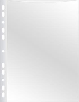 Uit PP van 80 micron. Glashelder. 11-gaatsperforatie. Pak van 50 stuks.