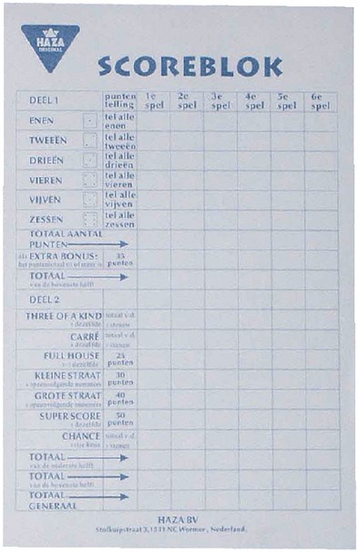 Accessoires Scoreblok Yahtzee 94x145mm 250 vel