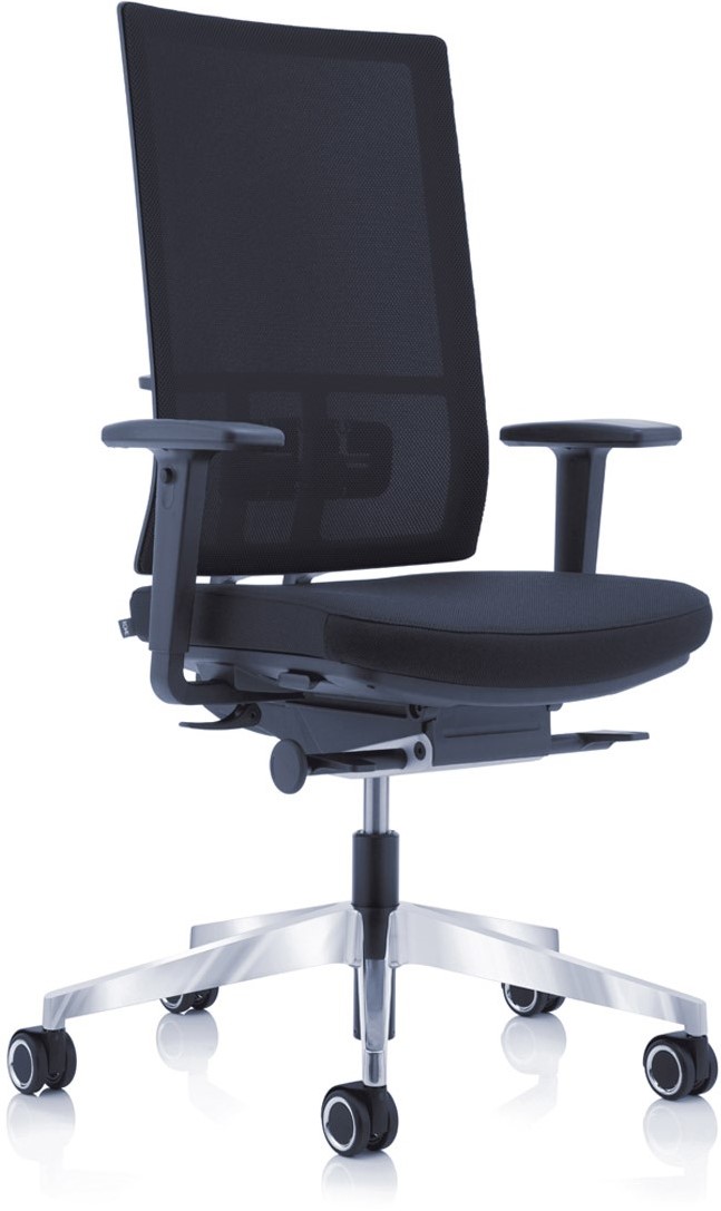 Bureaustoelen zijn leverbaar met zwart kunststoffen voet of met een aluminium voet.