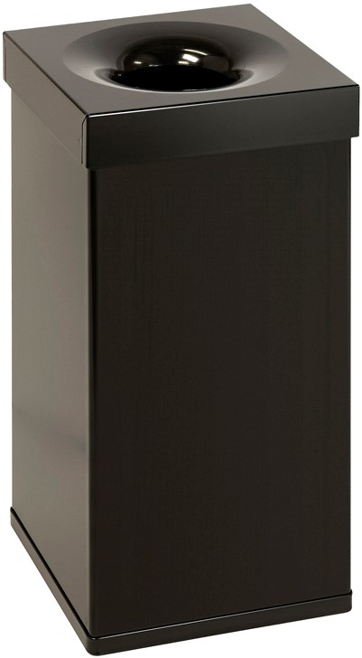 Vierkante vlamdovende papierbak. Onderbak vervaardigd uit hoogwaardig aluminium of RVS en deksel van RVS, alle onderdelen zijn gepoedercoat.