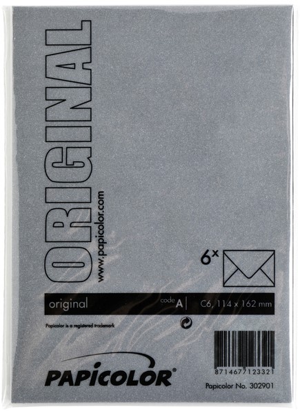 Envelop Papicolor C6 114x162mm kraft grijs pak à 6 stuks